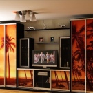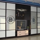 يقع الجزء المفتوح من الخزانة ، كقاعدة عامة ، في الوسط ، وهو يمنح الغرفة بصريًا لمسة خاصة من الأناقة ويختلف في الحجم عن الأقسام الأخرى..
