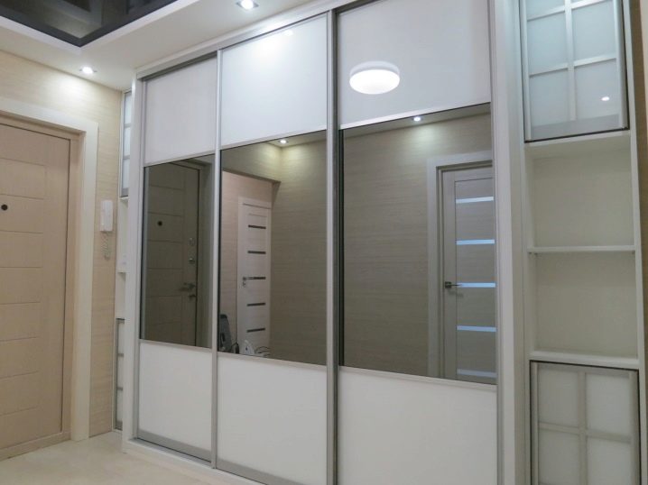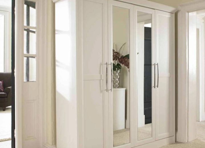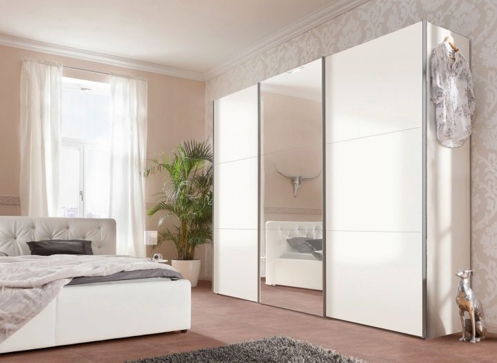 الخيار الأكثر شيوعًا هو خزانة ملابس مع مرآة. يتيح الجمع بين اللون الأبيض والسطح المرآة زيادة توسيع المساحة. يمكن عكس جزء واحد فقط من الأبواب أو الجدار الأمامي بأكمله. كل هذا يتوقف على تفضيلاتك وميزاتك الداخلية..