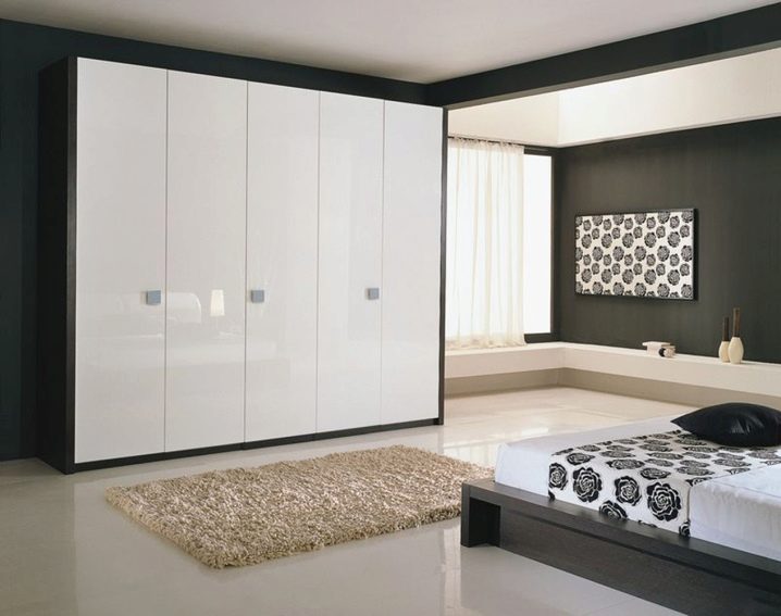 أحد الخيارات الكلاسيكية هو خزانة ملابس بالأبيض والأسود. تبدو أنيقة ومتطورة. سوف يتناسب هذا الأثاث تمامًا مع التصميمات الداخلية الحديثة ذات التقنية العالية أو الحديثة. لون آخر أنيق للخزائن هو الأبيض والرمادي. يبدو هذا المزيج أيضًا ممتعًا جدًا من الناحية الجمالية..