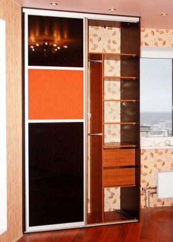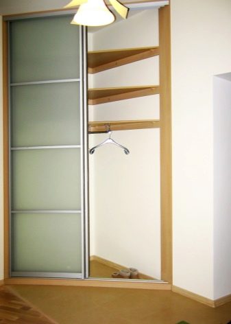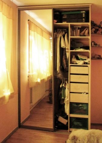 اعتمادًا على أي جزء من الشقة مخصص للخزانة ، سيكون هناك ملء. يمكن أن تكون خزانة الملابس الصغيرة في غرفة النوم ضيقة – حوالي 45 سم ، بالإضافة إلى باب واحد أو بابين. إذا كان سيتم استخدام خزانة الملابس هذه من قبل الزوجين ، فمن الضروري أن يكون هناك مكان فيها لخزانة ملابس النساء والرجال. أيضًا ، يجب أن تحتوي خزانة الملابس على مقصورة للشماعات والأرفف أو الأدراج حيث يتم تخزين الملابس الداخلية ومجموعات الفراش والبطانيات والبطانيات والمناشف وأشياء أخرى.