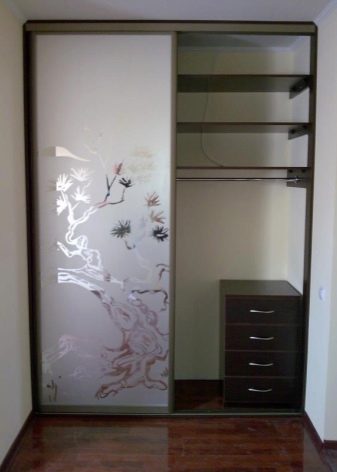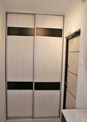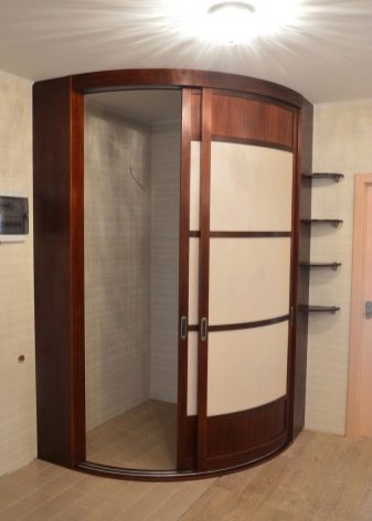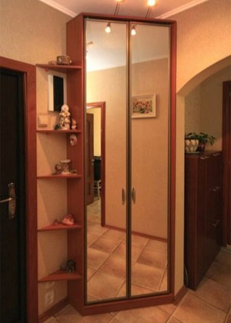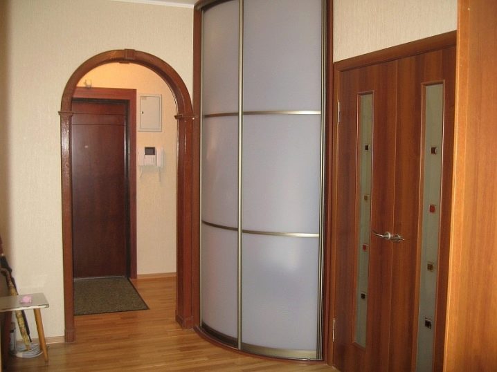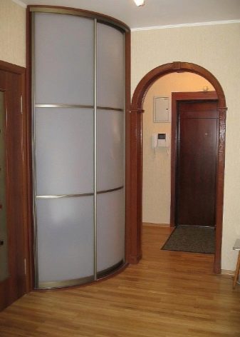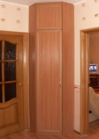 في شقة من غرفة واحدة ، باستخدام مثل هذه الخزانة ، يمكنك تحديد المساحة. بالإضافة إلى ذلك ، يمكن صنعه على الوجهين – من ناحية توجد غرفة لارتداء الملابس ، ومن ناحية أخرى مكان لتخزين أدوات المطبخ. ستكلف هذه الخزانة أقل من خزانة خزانة ، لأن استهلاك المواد لها أقل..