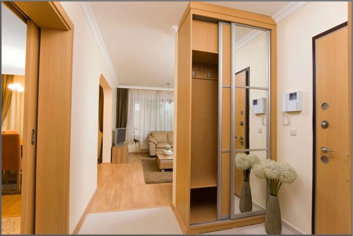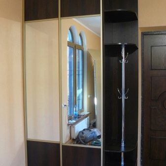 يختلف الترتيب الداخلي والخارجي لخزانة الملابس في الردهة إلى حد ما عن تلك الخزانات المخصصة لغرف المعيشة. على عكس غرفة النوم ، فإن المرايا الموجودة في الردهة ليست محظورة فحسب ، بل إنها مرحب بها أيضًا. خاصة إذا كان رواقًا صغيرًا. في هذه الحالة ، ستكون المرآة مجرد تقنية جيدة جدًا لتوسيع حدود الغرفة بصريًا. بالإضافة إلى ذلك ، سوف ينعكس الضوء من مصابيح السقف فيه ، مما يجعل الغرفة أكثر إشراقًا ، خاصة وأن الرواق ليس أكثر الأماكن إضاءة في الشقة. لا توجد نوافذ فيه ، ولا يتم تشغيل الضوء هنا إلا عند الضرورة. لذلك ، من الأفضل اختيار أثاث ممرات خروتشوف الضيقة للظلال الخفيفة. بالإضافة إلى ذلك ، يجب أن يتداخل مع التصميم العام للغرفة. لإضافة ضوء في ممر مظلم ، يمكنك عمل إضاءة LED على طول الجزء العلوي من خزانة الملابس – المقصورة.