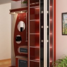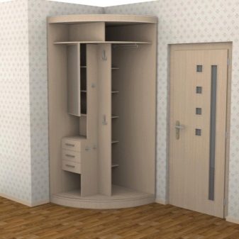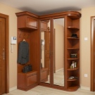 - خزانة الزاوية المصنوعة من الخشب بأسلوب كلاسيكي تبدو أنيقة للغاية ومكلفة (الشكل 6). على الرغم من صغر حجمه ، يجمع التصميم بين كل ما هو ممكن: خزانة ملابس مغلقة للملابس والأحذية الضخمة ، ورفوف مفتوحة لتخزين الأشياء الصغيرة المختلفة ، والخطافات ، والشماعات ، والأدراج ، والميزانين..