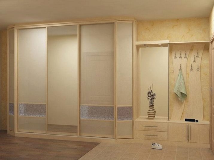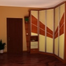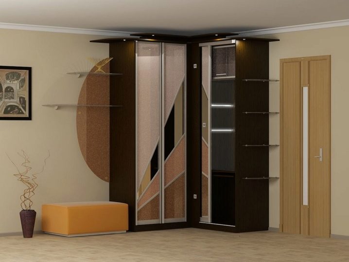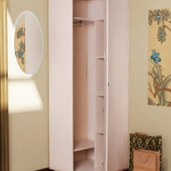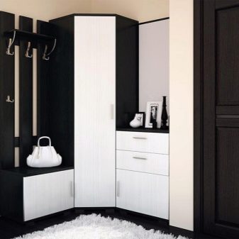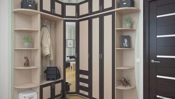 - خزانة زاوية صغيرة شبه منحرفة في رواق صغير (الشكل 4). تبدو أنيقة وتتناسب عضويا مع الممر. فسيح بما يكفي لعائلة مكونة من شخصين.