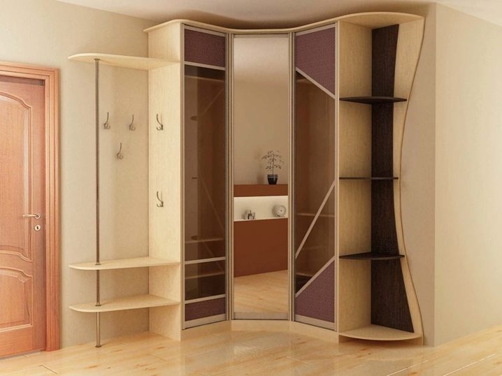هذا النوع من أثاث المدخل مناسب جدًا للاستخدام في الغرف من أي حجم. هناك نوعان من هذا النوع: خزانة ملابس على شكل حرف L وشبه منحرف. يتكون التصميم على شكل الحرف “L” من خزانتين صغيرتين مترابطتين في النهاية. إنها مريحة للغاية للتركيب في ممر ضيق. في هذه الحالة ، سيكون لخزانة الملابس جانب طويل وآخر قصير ، وفقًا لأبعاد الرواق..