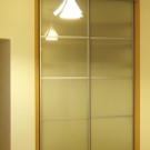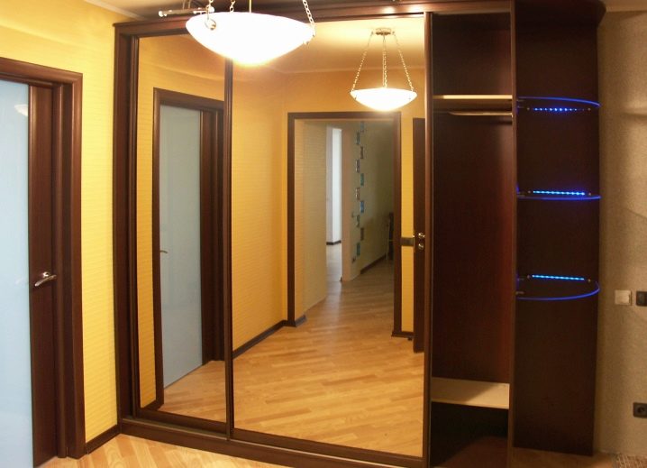 - خزانة مدمجة في رواق ضيق (الشكل 8). تم اختيار الأبواب ذات المرايا المزودة بإدراج من الخشب الفاتح وأضواء كاشفة أسفل السقف كديكور أنيق..