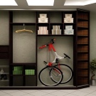 - تشغل خزانة الملابس المدمجة بباب عاكس (الشكل 9) مساحة دنيا وفي نفس الوقت لديها وظائف كافية ، حيث تحتوي على طابق نصفي لتخزين القبعات ومستويين من الشماعات. مثالي لعائلة قياسية مكونة من 3 أفراد.