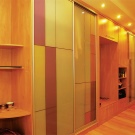 - خزانة الملابس المدمجة في الردهة الصغيرة مصنوعة من الخشب الطبيعي مع سطح مرآة (الشكل 2). تم تجهيز الهيكل بإضاءة أصلية ، مما يوسع مساحة الغرفة بصريًا..