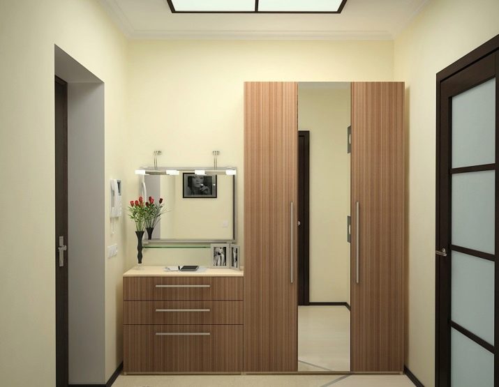 أيضًا ، بالنسبة للممر الصغير ، يمكنك إنشاء خزانة ملابس مدمجة أو شبه مدمجة ، والتي ستشغل مساحة أقل بكثير دون أن تفقد وظائفها.