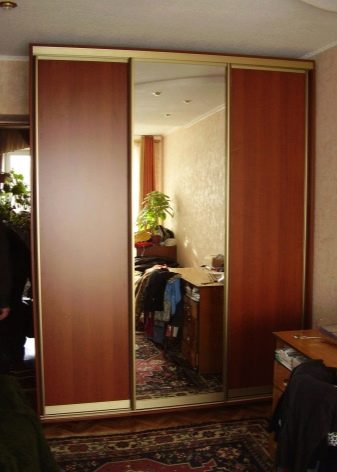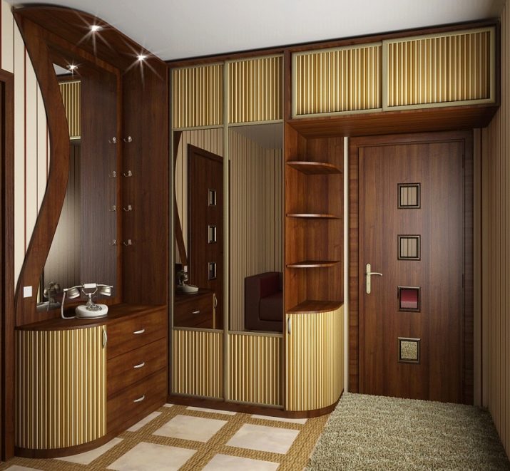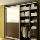 يمكن لخزانة الملابس المنزلقة فصل منطقة الرواق عن منطقة المعيشة في شقق الاستوديو. تم تركيب خزانة الملابس في عرض الغرفة بالكامل ، في وسطها باب منزلق ، وعلى الجانبين توجد حجرات للملابس. يفضل بعض الأشخاص وجود جميع الأبواب على كلا الجانبين ، مما يسمح بالوصول إلى الملابس من الردهة وغرفة النوم في نفس الوقت. خيار مناسب للغاية عندما يكون الوصول إلى الملابس الخارجية من الردهة ، ويكون الوصول إلى الفراش من منطقة المعيشة.