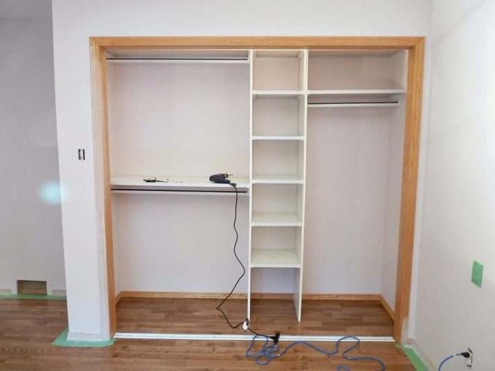 الخشب مادة تقليدية ، ومع ذلك ، إذا كنت تخطط لصنع خزانة ملابس مدمجة ، فمن الأفضل عدم استخدامها. يخلق الجدار الخرساني رطوبة إضافية ، وتتمتع أشجار التنوب والصنوبر ، التي تصنع منها الألواح عادة ، بمقاومة منخفضة للرطوبة.