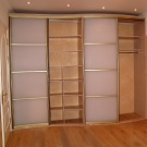 - ثم يتم عمل إطار من قضيب أو شرائح معدنية: أولاً ، عموديًا (ارتفاع الخزانة) وأفقيًا (عرض الخزانة) ، يتم توصيل الشريط بالحائط ، ثم بالأرضية والسقف (عمق الخزانة) ، ثم القضبان الخارجية العمودية مثبتة ، ثم يتم إدخال سكة عرضية بينهما. بنفس الترتيب ، يتم تثبيت الأقسام الداخلية بين الأقسام ؛