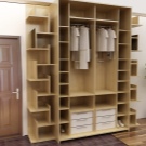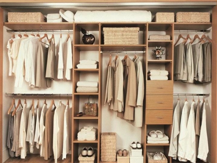 في أي خزانة ، خاصة إذا كانت بمفردها في الشقة ، يجب أن تكون هناك أقسام لتخزين الملابس الخارجية ، والأحذية ، والقبعات ، والبياضات ، والفراش ، وحقائب السفر ، والوسائد ، والبطانيات ، والفساتين ، والسترات والسراويل. تُظهر الصورة المكان الأمثل للأقسام في خزانة الملابس في الردهة.