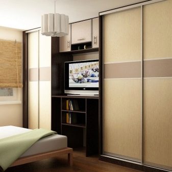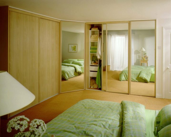 صحيح ، يجدر التوضيح أن خزانة الملابس هذه لن تتناسب مع غرفة نوم صغيرة مستطيلة الشكل. في حالات أخرى ، سيكون ذلك مناسبًا بالتأكيد. ميزة أخرى لمثل هذه الخزانة هي أن تركيبها سيكلفك عدة مرات أقل ، لأنه يمكنك الاستغناء عن الجدران الخلفية والجانبية..