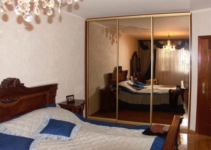 خزانة الملابس مع مرآة جيدة لأنها تسمح لك بتوسيع مساحة الغرفة بصريًا. إذا اخترت خزانة ذات مرآة في الحائط بالكامل ، فسوف تنعكس الغرفة الموجودة بها ، مما يعني أنها ستبدو أكبر مرتين.