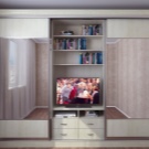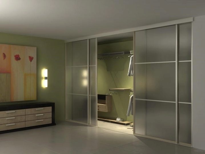 ملائمة لاستخدام خزانة الملابس المدمجة. عند تثبيته ، يبدو أن المساحة الكاملة للغرفة تظل مجانية ، على الرغم من حقيقة أن جميع الأشياء موضوعة على الرفوف. هذا الإصدار من خزانة الملابس هو عمليا غرفة ملابس صغيرة..