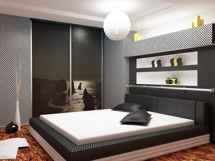 من الأفضل أن يكون النمط الموجود في خزانة الملابس مدمجًا مع ورق الحائط ، فإن الصورة العامة ستكون متناغمة ومثيرة للاهتمام ، ولا تبدو خزانة الملابس سخيفة وغير مناسبة.