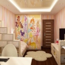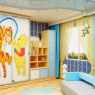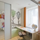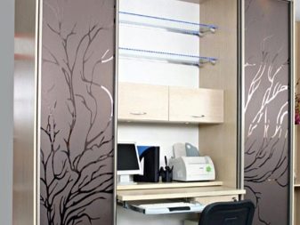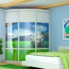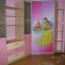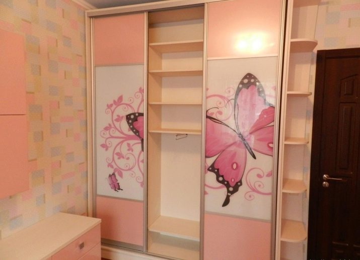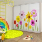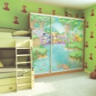 عند تزيين غرفة مشرقة ، يمكنك استخدام واجهة برسم أو طباعة صور. يمكن للطفل نفسه اختيار الرسم الذي يعجبه ، وهنا لا حدود للخيال: السفن البحرية والجوية ، وشخصيات الرسوم المتحركة ، والفراشات الملونة ، وتنسيق الزهور ، إلخ. يمكن دمج الطباعة مع تصميم المرايا أو الزجاج المصنفر إذا كانت الخزانة عريضة بدرجة كافية.