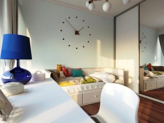 من المهم جدًا وضع خزانة ملابس ومنطقة تخزين. إذا كان ذلك ممكنًا ، يجب ألا تقوم بتثبيته بالقرب من مناطق النوم أو اللعب أو العمل. تتمثل المهمة الرئيسية لخزانة الملابس في تنظيف بقية المساحة الصالحة للاستخدام في الغرفة ، لجعلها أكثر ملاءمة.