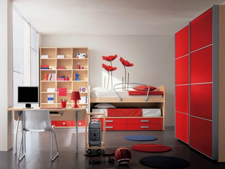 إذا كان الصبي يشارك بنشاط في الرياضة ، فإن الأمر يستحق صنع المزيد من المقصورات مع الحديد ، وتجهيزها بسلال شبكية. بالنسبة لمحبي مجموعة متنوعة من سيارات الألعاب و Lego ، فإن السلال أو الصناديق الفسيحة مناسبة ، لكن لا ينبغي أن تكون ثقيلة حتى يتمكن الطفل من إخراجها بنفسه. إذا كان الصبي يجمع مجموعات من ألعاب السيارات أو الألعاب الأخرى ، فإن الأرفف الطويلة مثالية. يمكن للطفل نفسه التحدث عن تفضيلاته وتقديم فكرة جديدة..