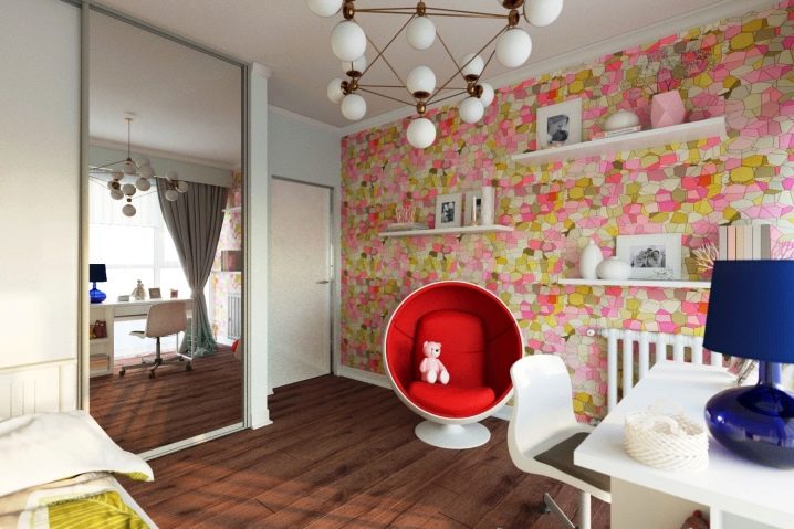 - واجهة كاملة بمرآة أو بإدخالات. بالنسبة للطفل المراهق ، لم تعد واجهة المرآة للخزانة تشكل خطرًا كبيرًا ويمكن استخدامها بسهولة في تصميم الغرفة. سوف يناسب هذا التصميم أي مساحة داخلية ويوسع مساحة الغرفة بصريًا. سيؤدي الجمع بين إدخالات وإدخالات المرآة من مواد أخرى إلى إنشاء تصميم أكثر إثارة للاهتمام. يمكن عمل إدخالات إضافية من الخشب أو البلاستيك باستخدام طباعة الصور.