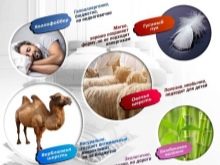 - يحافظ صوف الإبل والأغنام على الدفء جيدًا وله أيضًا تأثير علاجي, إنه ناعم وجيد التهوية وفي نفس الوقت يمكنه امتصاص الرطوبة وتبخرها تمامًا. عيب هذا الحشو هو قدرته على التسبب في الحساسية ، والهشاشة (بمرور الوقت ، يقع الصوف في كتل) ، وخطر العث والكائنات الحية الدقيقة. غسل المنتج غير مقبول