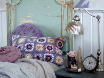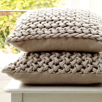 طريقة الحياكة المستخدمة يمكن أن تعطي الوسادة مزاجها الخاص. تعتبر عناصر الحياكة الضخمة ثقيلة. لخلق مزاج رومانسي ، على العكس من ذلك ، يستخدمون حياكة الدانتيل والزخارف الزهرية والانتفاخات..