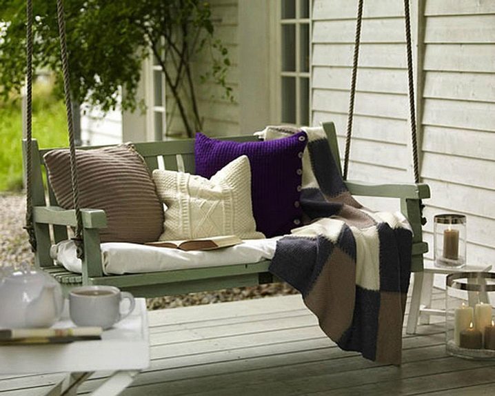 وسائد محبوكة بتصميم أرجوحة منزلية مريحة على الشرفة.