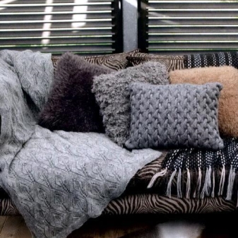 يمكنك تزيين غرفة المعيشة وغرفة النوم والحضانة بإكسسوارات مماثلة. في داخل المطبخ ، ستبدو الوسائد المحبوكة في زاوية ناعمة على المقاعد والكراسي..