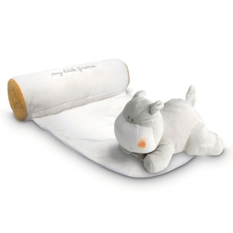 - وسادة تحديد الوضع: يتكون من بكرتين متصلتين بقطعة قماش. تحدد موقف الطفل. هذا مهم عند التقيؤ (يمكنك وضع الطفل على جانبه) وهو مناسب جدًا لطاولة التغيير: لن يترك الأطفال يسقطون منها.