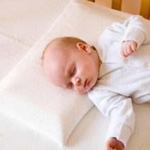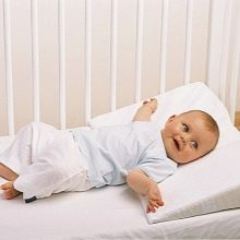 - الوسائد المائلة تختلف في شكل مسند الرأس. تمت الموافقة على هذه المنتجات منذ الولادة. إنها تساعد الطفل على التخلص من الهواء المبتلع أثناء الرضاعة ، مما يمنع تكوين المغص.