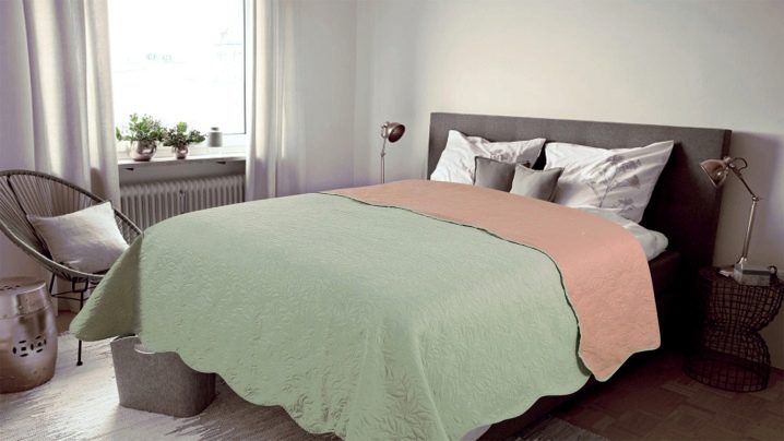 - “ألبا”. هذه بطانية قابلة للعكس من الألياف الدقيقة. يسمح لك بتغيير جو غرفة النوم حسب الحالة المزاجية. سيضيف اللون الوردي الرومانسية إلى الديكور. بتحويله إلى اللون الأخضر لأعلى ، سيعزز المنتج الراحة والاسترخاء..