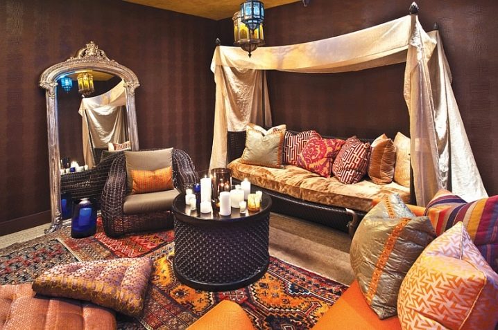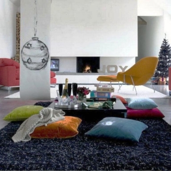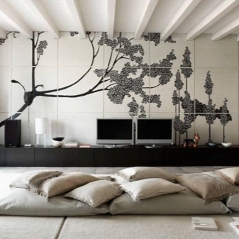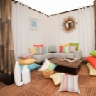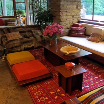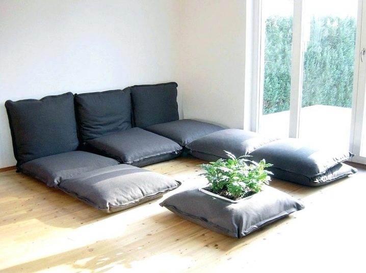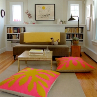 يمكن استخدام هذا البديل للأثاث الضخم في غرفة النوم وغرفة المعيشة ومناطق أخرى حتى المطبخ أو الشرفة. باستخدام وسائد الأرضية ، يمكنك تقسيم المساحة إلى مناطق.