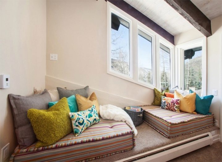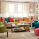 - الوسائد الزخرفية الزاهية, يمكنك الجلوس عليها أيضًا ، مما يجعلها مثالية لشقة صغيرة مصنوعة بألوان هادئة. إذا كان الجزء الداخلي من الغرفة محايدًا ، فيمكنك تنويعه بسهولة بهذه الطريقة. اختر عدة وسائد بألوان مختلفة أو قم بتجميع مجموعة من المنتجات المصنوعة بنفس نظام الألوان. في أي حال ، سيبدو أنيقًا ومريحًا..
