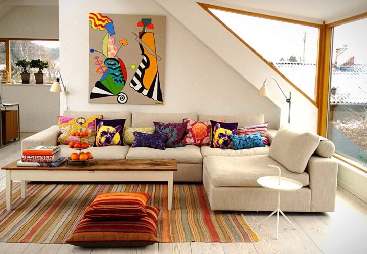 بشكل عام ، الوسائد من هذا النوع متعددة الاستخدامات. لذلك ، فإن دمجها مع الأشياء والأثاث الأخرى ، كقاعدة عامة ، ليس بالأمر الصعب. عند شراء تفاصيل أخرى ، حاول التفكير في مدى ملاءمتها العضوي للداخل الذي قمت بإنشائه بالفعل.