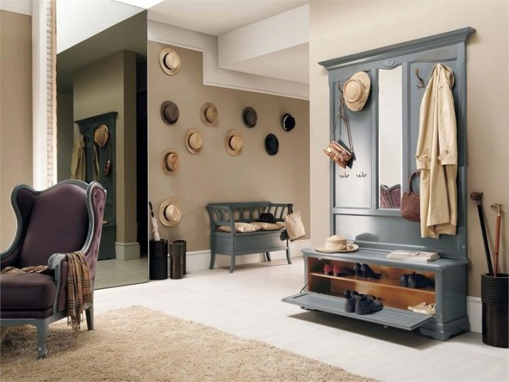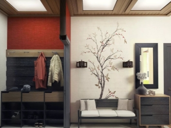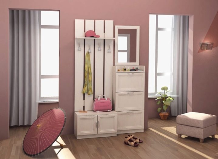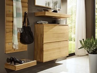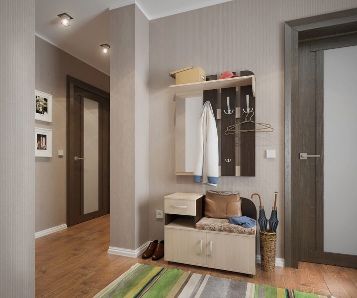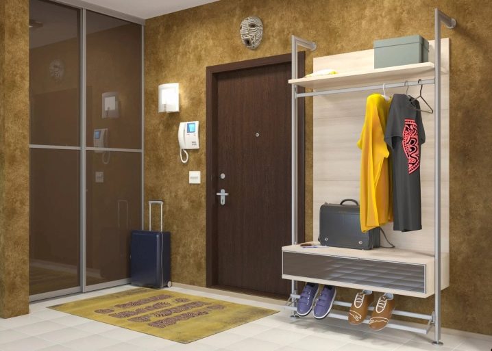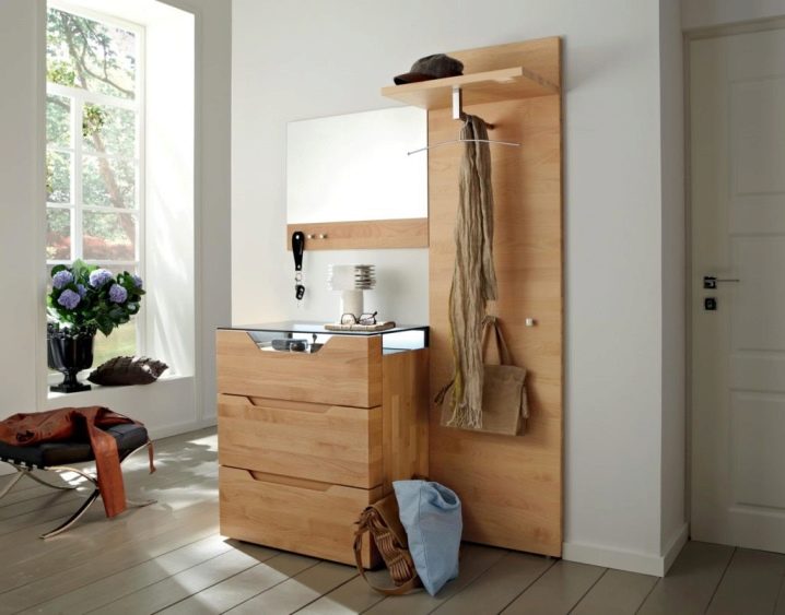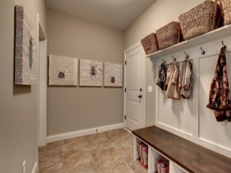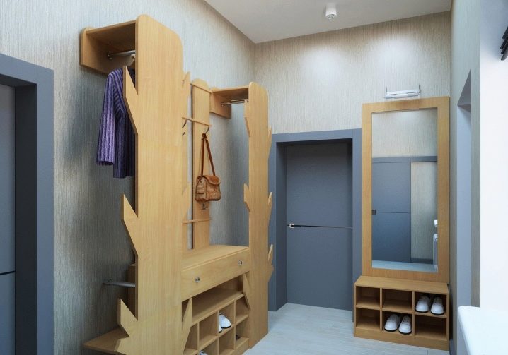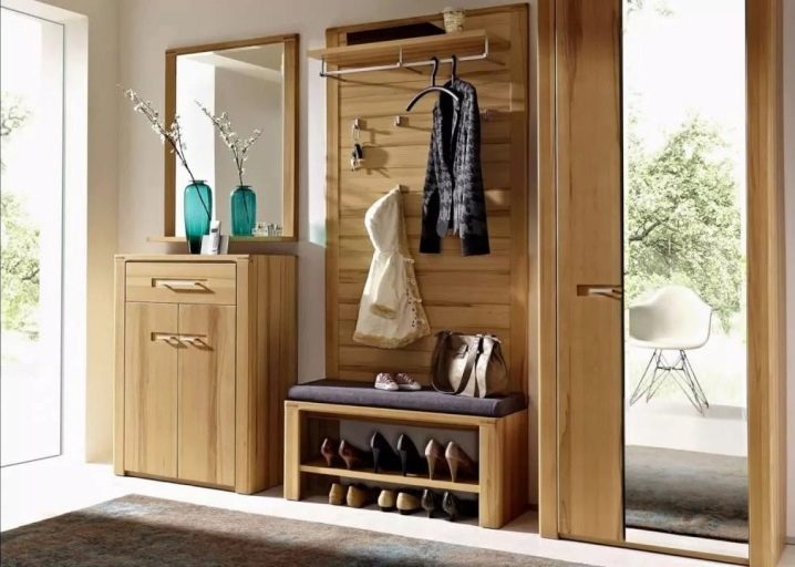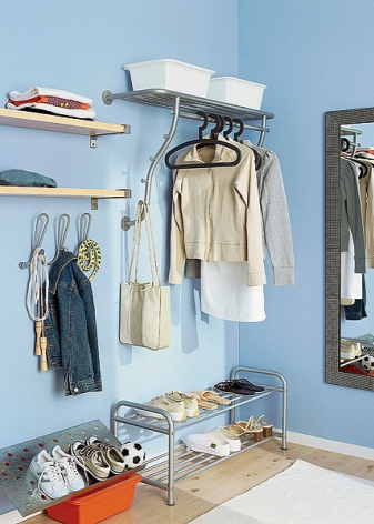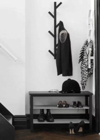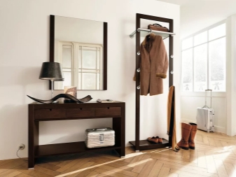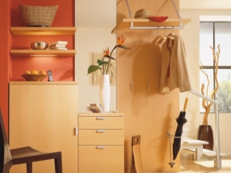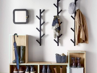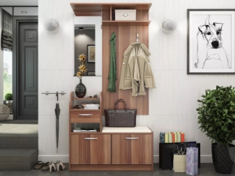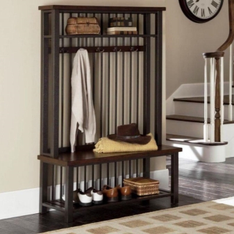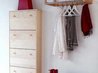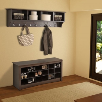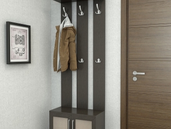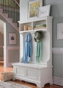 ستشغل علاقة الملابس التي لا تحتوي على قطاع إضافي سوى جزء الجدار الذي تم تثبيته عليه. يمكن دمج نموذج الحائط الموجود في الردهة مع حامل الأحذية مع مقعد ، حيث يكون من المريح جدًا الجلوس لتغيير الأحذية.