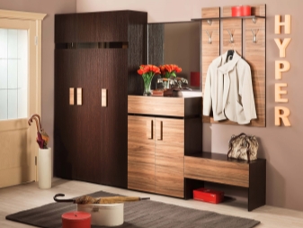 يعتمد التصميم على احتياجات الأسرة بالإضافة إلى تصميم الغرفة. في الوقت نفسه ، لا توجد مساحة فارغة للملابس تحت هيكل الجدار. غالبًا ما يستخدم لتثبيت أرفف الأحذية أو الأدراج. تُستخدم قطعة الأثاث هذه أيضًا كمقعد ناعم لتغيير الأحذية..
