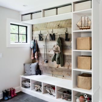 تجمع قطعة الأثاث المريحة هذه في الردهة بين عدة وظائف في آنٍ واحد: مكان للملابس الخارجية وكذلك للعديد من أزواج الأحذية. تم تجهيز الجزء السفلي من الهيكل بعدد كبير من الأرفف خصيصًا لفترة طويلة وليس فقط لتخزين الأحذية والأحذية. غالبًا ما تحتوي هذه النماذج على رف إضافي في الجزء العلوي للقبعات والأوشحة والمظلات والأشياء الصغيرة الأخرى. إذا كان طراز الحظيرة المدمجة مزودًا برف أحذية عريض ، فسيتم تشكيل مقعد ناعم ومريح لتغيير الأحذية هنا..
