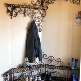 المنتجات المعدنية عرضة للطلاء بالكروم أو تلطيخه ، حسب فكرة التصميم. تستخدم المنتجات المزورة أيضًا في نماذج شماعات الجدار. يمكن أن تتناسب مع التصميمات الداخلية الكلاسيكية والحديثة. الشماعات المعدنية في الردهة متينة للغاية وذات قوة عالية.