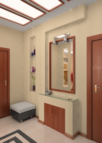 المرآة ذات الأرفف هي السمة الأكثر استخدامًا للأثاث في الردهة. حتى في الحقبة السوفيتية ، كان من الشائع تركيب منضدة الزينة أو التعريشة في هذه الغرفة..