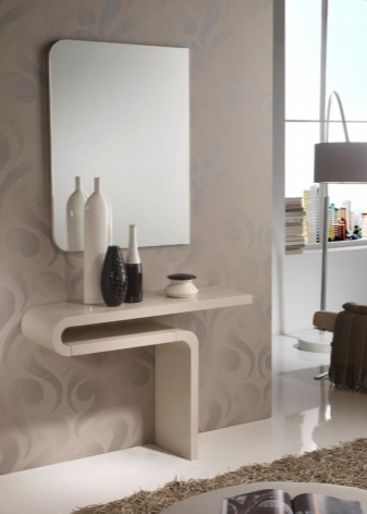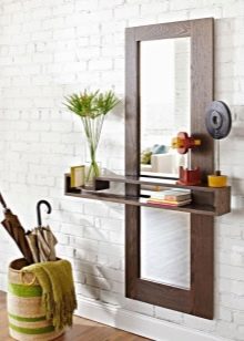 يمكن أيضًا دمج مرآة مع رف في مجموعة الأثاث. غالبًا ما تستخدم هذه المنتجات عند تأثيث الممرات صغيرة الحجم. نظرًا لأن الممر عبارة عن غرفة مظلمة نوعًا ما ، فغالبًا ما تستخدم هنا مرآة مضيئة. يساعد في إلقاء الضوء على الانعكاس حتى تتمكن من رؤيته بشكل أكثر وضوحًا..