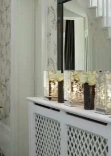 هناك أيضًا عدة خيارات لكيفية تجهيز المرآة برف في الردهة. لذلك ، إذا تم تركيب بطارية في غرفتك ، فيمكن تعليق مرآة الحائط فوقها. في هذه الحالة ، تحتاج إلى إغلاق المبرد بصندوق ، ثم يمكن استخدام الجزء العلوي كرف. يمكنك أيضًا استخدام الجزء العلوي من رف الأحذية كرف. إذا كانت غرفتك واسعة بما يكفي وكان هناك مكان فيها يشعر بالفراغ ، فيمكنك بسهولة أن تشغلها بمرآة مع رف..