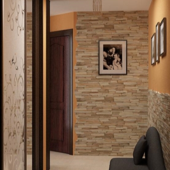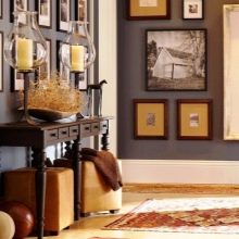 في ممر ضيق ، غير مزدحم بعدد كبير من الأرفف والخزائن ، يمكنك وضع عثماني صغير في ظل متباين. على سبيل المثال ، في غرفة ذات جدران برتقالية ، نصفها مزين بالحجر المزخرف ، يمكنك وضع وسادة ناعمة سوداء ملفتة للنظر مع ظهر مستدير وتزيين الموقف بلوحات جدارية بإطارات سوداء. لا يوصى بعرض قطع أثاث إضافية في مثل هذه البيئات ، حيث يمكن أن تجعل التصميم أثقل..
