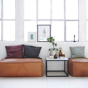 - الأناقة لن تنفد أبدًا نسخ جلدية. يمكن لمثل هؤلاء العثمانيين الناعمين والرائعين إحياء الداخل وإعطائه لمسة خفيفة من الأرستقراطية. يمكن تنجيد الوسادة بالكامل بالجلد أو الجزء العلوي منها فقط (المقعد). أغلى الخيارات ودائم مع تقليم من الجلد الطبيعي. ستحتفظ هذه المواد بعرضها لفترة طويلة ولن تتشوه. الجلد الطبيعي لطيف الملمس ومرن للغاية ، لذلك ليس من السهل إتلافه.