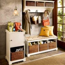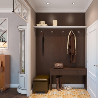 بالنسبة للممر ، غالبًا ما يتم شراء العناصر الداخلية المفيدة مثل المقعد أو العثماني. كقاعدة عامة ، هذه الأجزاء متوسطة إلى صغيرة الحجم ، لذا يمكن وضعها حتى في ممر ضيق للغاية..