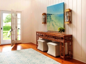 - سابقة بمعنى البيئة. اسم هذا النمط يتحدث عن نفسه. يتضمن الاتجاه البيئي استخدام الأثاث المصنوع من مواد طبيعية وصديقة للبيئة في الداخل. بالنسبة إلى رواق في هذا السياق ، فإن وسادة ساحرة وعالية الجودة مصنوعة من الخيزران أو الهيفيا أو الروطان مناسبة..
