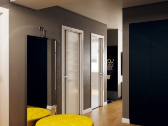 يوصى بوضع نماذج من الألوان الزاهية والغنية في ممرات مصنوعة بألوان هادئة. على سبيل المثال ، وسادة منخفضة مستديرة في ظل ليمون كثيف ستكمل الممر بجدران قهوة وأرضية خشبية فاتحة وعناصر زرقاء داكنة (باب مدخل وسجادة أرضية).