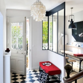 في الردهة ، المصنوعة على طراز الدور العلوي وتنتهي بالطوب الأبيض المزخرف ، سيبدو المقعد العثماني الصغير الصلب باللون الأبيض. يمكن استكماله بمرآة طويلة بإطار خشبي ولوحات فاتحة بإطارات سوداء على الجدران..