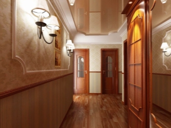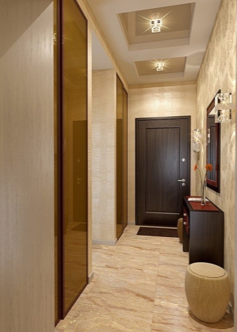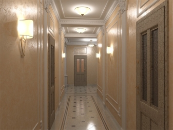 إذا كان الممر طويلًا جدًا ، يمكن تقسيم السقف إلى شظايا ، تمامًا مثل الأرضية ، عن طريق تسليط الضوء عليها بظلال مختلفة أو عن طريق وضع شعاع في الأعلى لتتناسب مع الأبواب وألواح القاعدة ، وتقسيم المناطق.