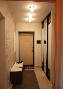إذا سمحت المساحة ، فمن المناسب وضع خزانة ملابس. الخيار الشائع هو هيكل جسم مدمج يجمع بين خزانة ملابس للملابس الخارجية ، وطابق نصفي ، ورفوف للأحذية ، ورفوف للإكسسوارات ، وجميع أنواع الأدراج ، وغالبًا ما يكون مقعدًا. لا تنسى إمكانية وضع المرايا على أبواب الخزانة. سيكون الحل الجيد هو التثبيت في الهيكل الإضاءة الداخلية للغرفة. هذه حركة تصميم جيدة ومصدر إضاءة إضافي..